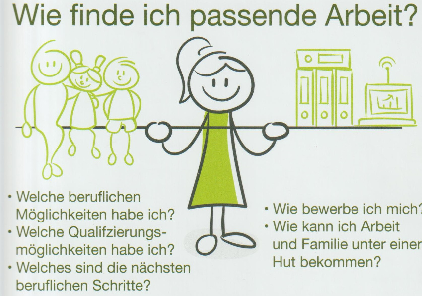 Unter Berücksichtigung ihrer jeweiligen beruflichen Qualifikation, ihrer Wünsche sowie der aktuellen Lebenssituation werden Ratsuchende von Fachberaterinnen dabei unterstützt, einen für sie passenden Weg in den beruflichen (Wieder-)Einstieg zu finden. Ebenso werden Ausbildungs-, Qualifizierungs- und Fördermöglichkeiten überprüft.